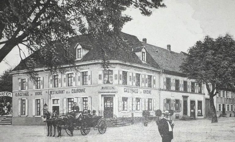 Nach der Zerstörung im Zweiten Weltkrieg im Jahr 1945 wurde das Gebäude am gleichen Standort wieder aufgebaut. Heute verbindet das Hotel Krone seine historische Tradition mit moderner Gastfreundschaft im Herzen des Markgräflerlands.